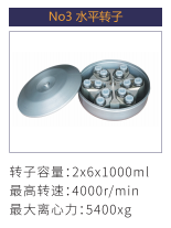 No3 | 水平轉(zhuǎn)子 | 2×6×1000ml | 4000r/min | 5400xg |