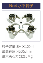 No4 | 水平轉(zhuǎn)子 | 8/4x100ml | 4200r/min | 3210xg |