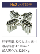 No2 | 水平轉(zhuǎn)子 | 32/24/16x15ml | 4200r/min | 3210xg |