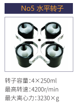 No5 | 水平轉(zhuǎn)子 | 4x250ml | 4200r/min | 3230xg |