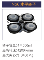 No6 | 水平轉(zhuǎn)子 | 4x500ml | 4200r/min | 3400xg |