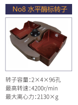 No8 | 水平酶標(biāo)轉(zhuǎn)子 | 2x4x96孔 | 4200r/min | 2130xg |